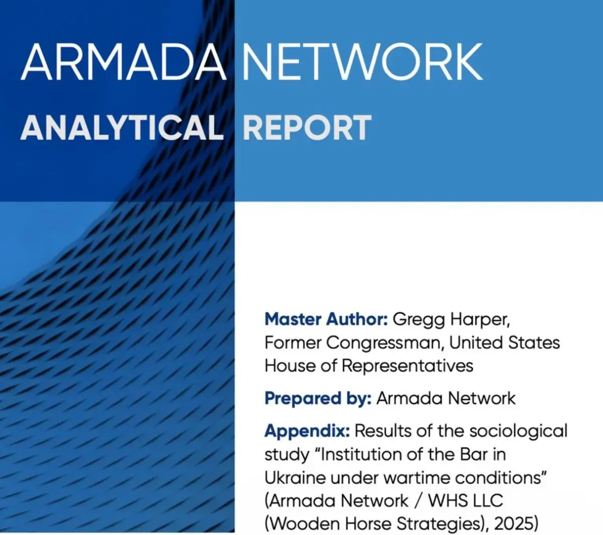 "5 лютого 2026 року в залі Європарламенту відбулася презентація звіту американської мережі Armada Network. Документ представив колишній конгресмен США Грегг Гарпер. У звіті йдеться про викривлення фактів, маніпуляції та системний тиск на адвокатуру з боку так званих "професійних активістів" і частини чиновників Міністерства юстиції.
